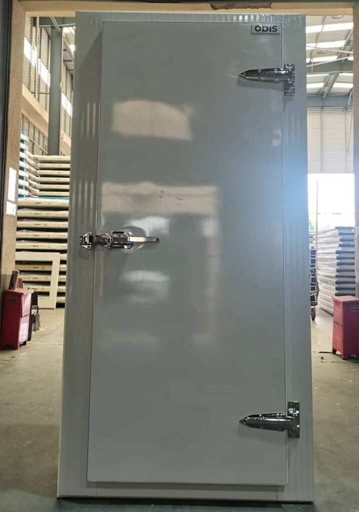 There are different kinds of cold room doors, including fully buried swing door, semi buried swing door, manual sliding door, electric sliding door, and so on. The most commonly used cold storage doors are semi buried swing door and sliding door. The swing door includes single open door and double open door. The thickness and the surface material of the cold room door can be customized according to customer’s need.